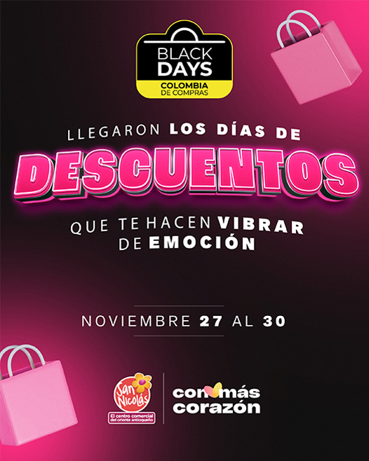 El Centro Comercial San Nicolás se une a la campaña nacional Colombia de Compras – Black Days, una iniciativa de Acecolombia que reúne al comercio de todo el país para dar inicio a la temporada decembrina con las mejores ofertas.